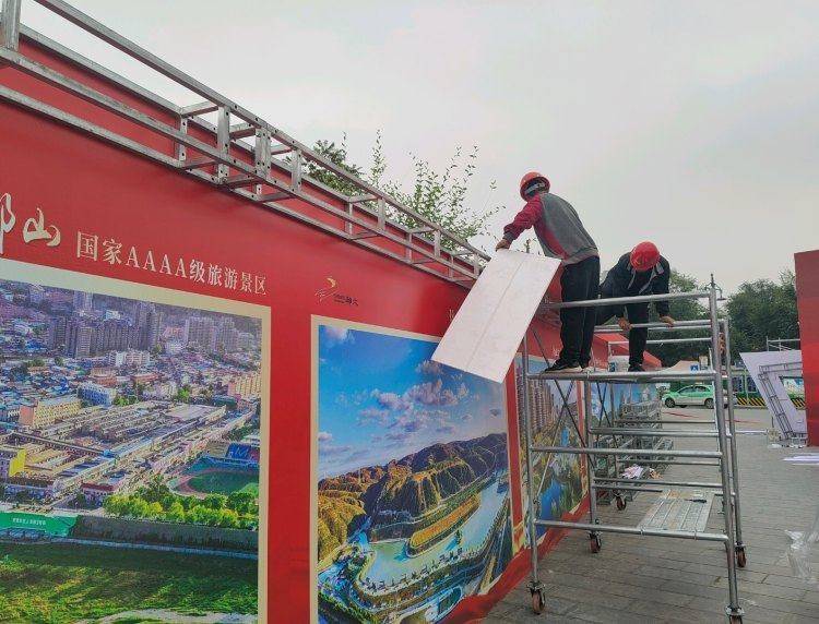 不远处,另一组工人正在搭建文化墙。“我们在入口处搭建了一个以数字‘76’为显著特征的大彩门,还搭建了一面长60米的主题墙,沿街全部悬挂五星红旗,并搭建了一个50米长的国旗长廊。同时我们还搭建了几处与国旗同框的拍照打卡点,供市民拍照打卡。”罗支旗介绍道。